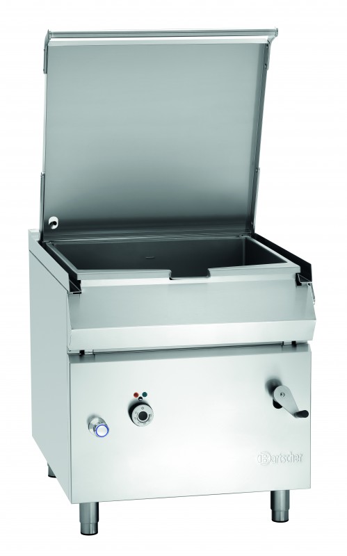 Kantelbraadpan van de serie 900 in bekende hoogwaardige rvs-uitvoering. De pot is volledig vervaardigd uit rvs en heeft een inhoud van 70 liter. Het elektro-model met manuele kantelinrichting heeft een watertoevoerkraan en is ontworpen voor koud- of warmwateraansluiting.