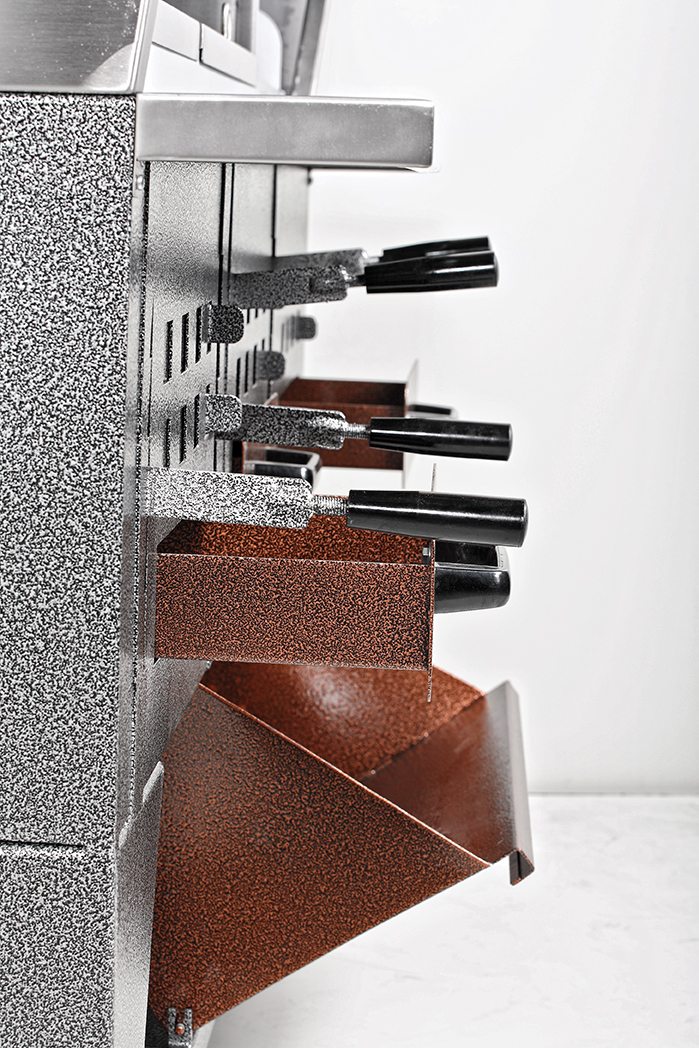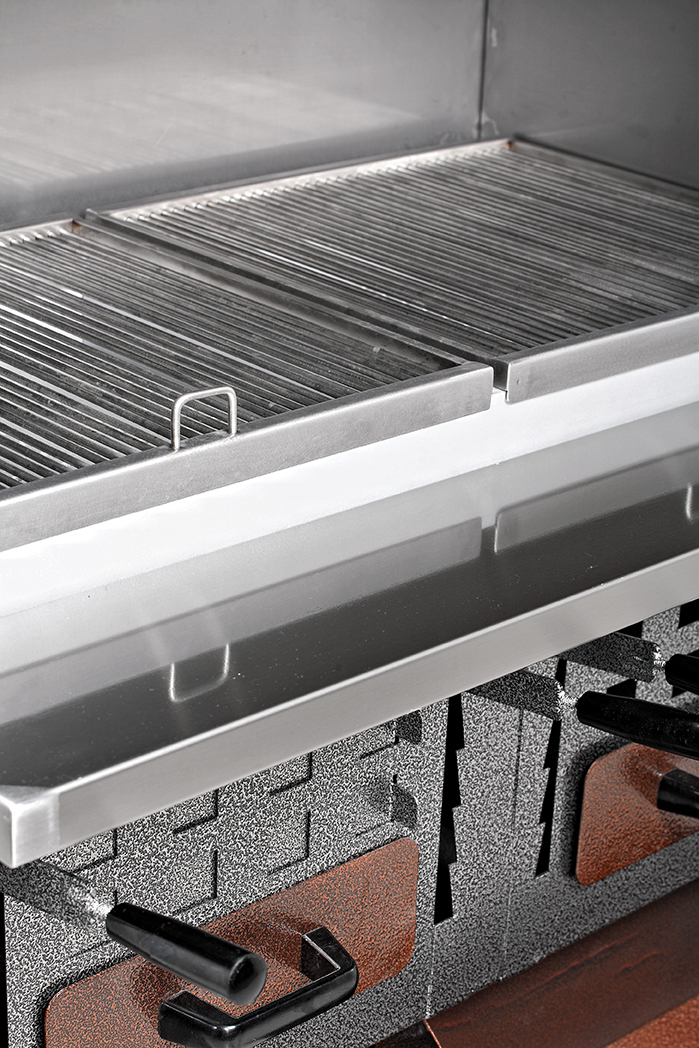 - Grill with three adjustable charcoal trays (510x530 mm).