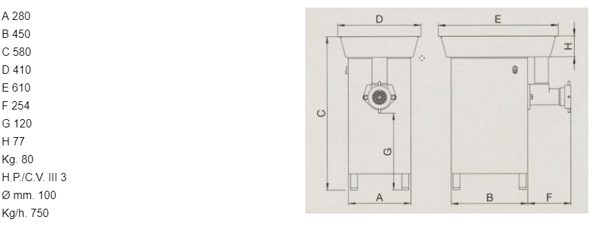 – Geïntegreerde RVS gehaktmolen 18/8.