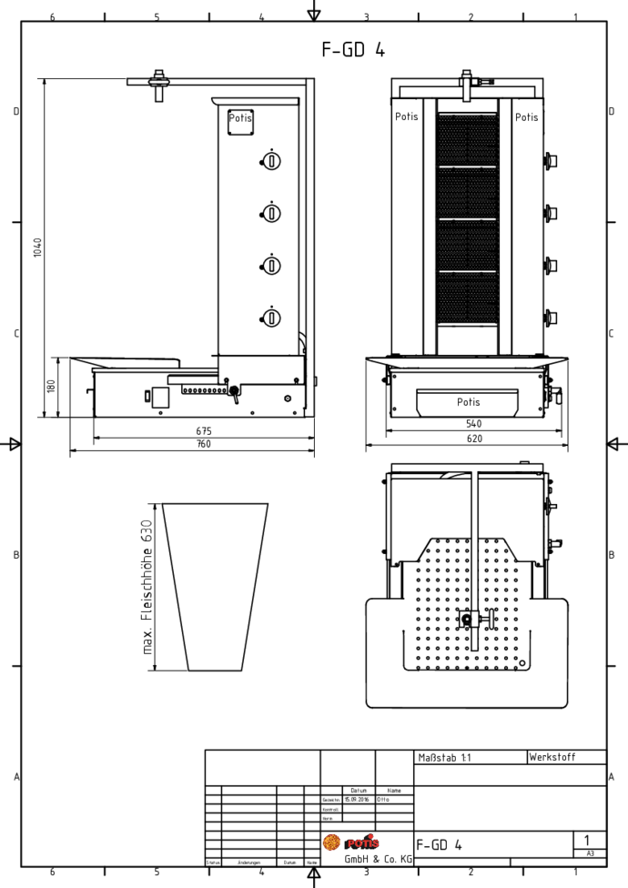Potis Doner Gyros Grill - 4 Branders - Aardgas | F-GD4