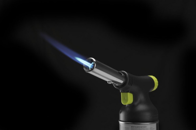 Ontworpen met chef-koks in gedachten door Robert Bronwasser. Deze koksbrander is een genot om te gebruiken dankzij het stijlvolle matzwarte ontwerp met groene accenten en de ergonomische grip. De koksbrander kan eenvoudig en stevig aan het gasbusje worden bevestigd (het is mogelijk om deze te vervangen nadat het gas op is) en bedekt de hele bovenkant van de bus.
