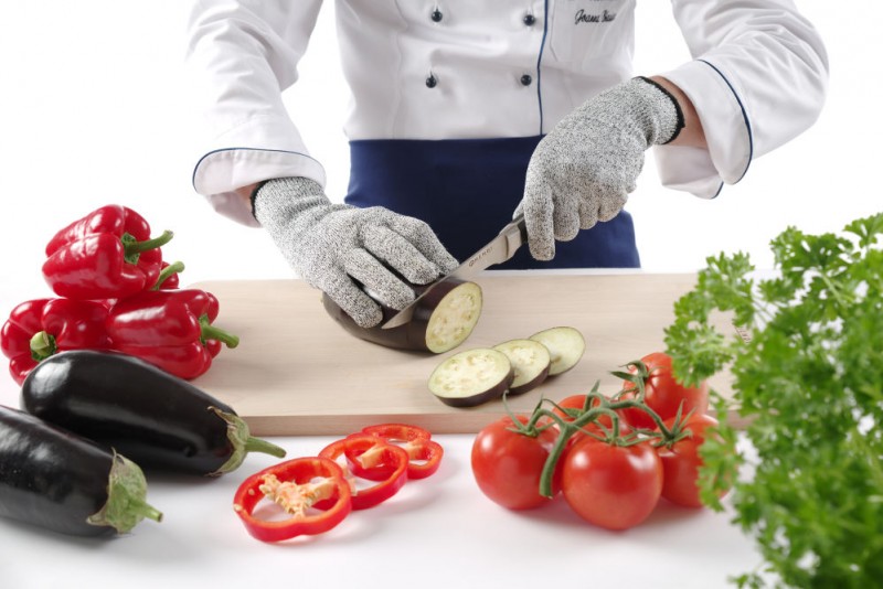 Biedt bescherming tijdens het hanteren van messen in de professionele keuken, zoals keukenmessen. De mix van HPPE, polyestervezels en nylon maakt deze handschoenen duurzaam en comfortabel. Niveau 4 circulair snijbestendig, klasse C rechte snijbestendigheid.