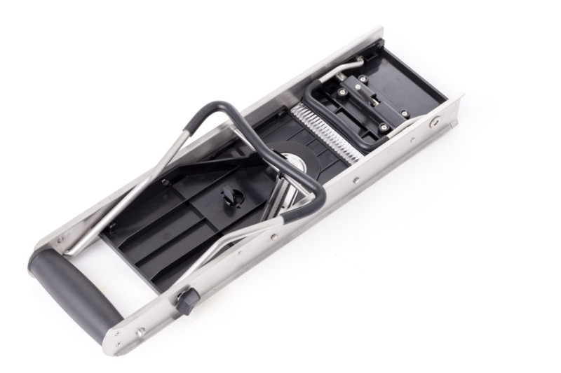 Kan vrijstaand worden gebruikt, op een kom of zelfs in de hand. Wordt geleverd met een opbergdoos voor de pads, een producthouder om de vingers tijdens het snijden te beschermen en een bladbescherming voor veilige opslag.