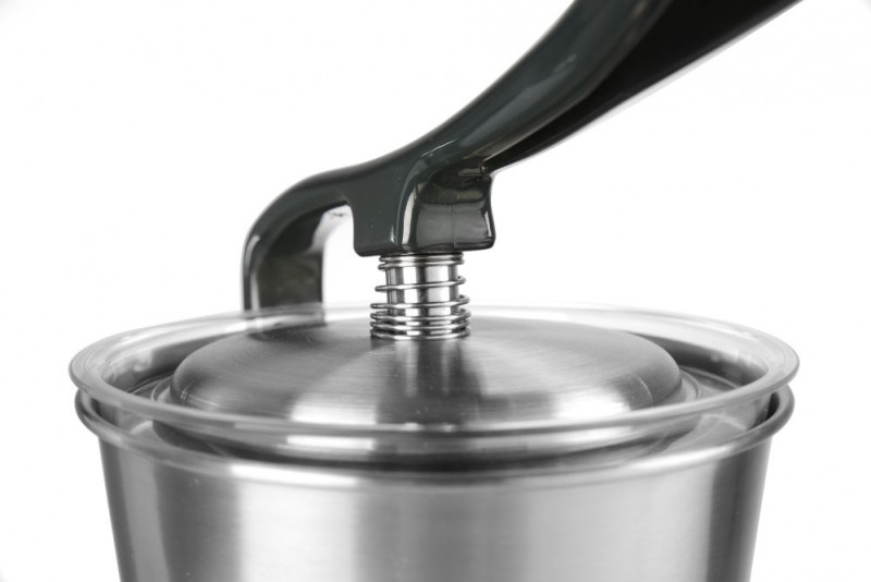Top met hefboom voor eenvoudige en veilige bediening. Verwijderbare perskom en perskegel van roestvast staal. Met spatscherm. Toerental: 980/min.