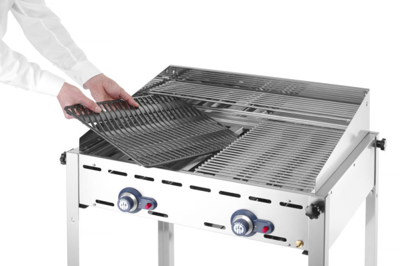 Green Fire Met 2 Branders, Hendi, Profi Line, Geëmailleerde Gietijzeren Bakplaat en Rooster GN 1/1, 11,6kw, 740x615x(h)825mm | H149508