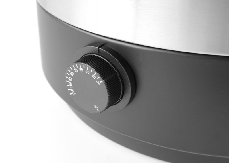 Ketel gemaakt van roestvast staal. Voorzien van polypropyleen geïsoleerde handgrepen en non-dripkraan. Thermostaat regelbaar tot 110 ° C. Ideaal voor glühwein of warm water. Kooktijd ≈ 75 min. Niet geschikt voor chocolademelk.