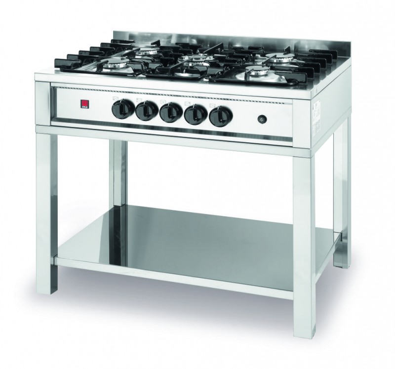 Uitgerust met 5 branders:- 3 branders van 3,0 kW.- 1 kleine brander van 1,8 kW.- 1 wokbrander van 3,5 kW.