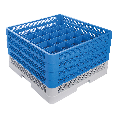 de robuuste vaatwaskorven verkleinen de kans op breuk, zijn ruimtebesparend en hebben extra grote maaswijdte, vervaardigd van speciaal polypropyleen, de open opzetrand wordt gebruikt voor meer onderlinge afstand, wanneer volle rekken op elkaar worden gestapeld