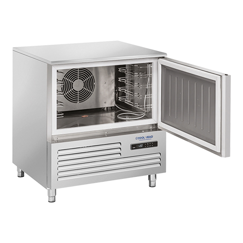 roestvrijstaal, voor het snel terug koelen of vriezen van voedsel en zorgt ervoor dat de temperatuur in de kern van het voedsel terug koelt van 90°C tot 3°C of tot -18°C in zeer korte tijd, volledig geïsoleerd, digitaal thermostatisch instelbaar, deurcontactschakelaar en voorzien van kerntemperatuurvoeler, koel- of vriescyclus d.m.v. tijd of kerntemperatuurvoeler