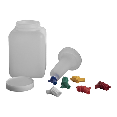 van doorzichtig polypropyleen waardoor de inhoud van elke BAR KEEP duidelijk te onderscheiden is. De bijbehorende schenktuiten in 6 verschillende kleuren kunnen ook op drankflessen gebruikt worden