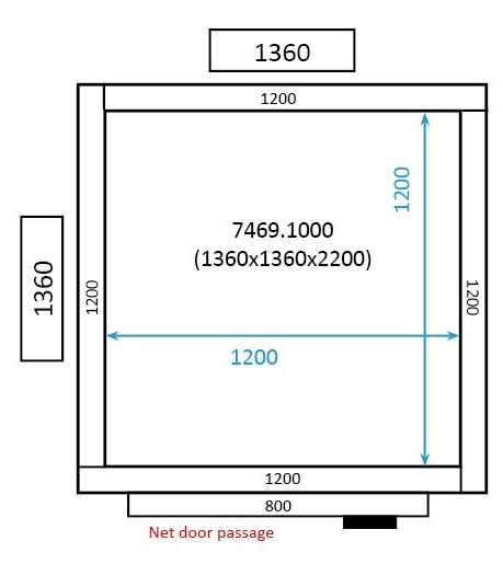 Koelcel 136x136x220cm Met Wand Motor 4.7-6.5 m3 | 7469.1000+7469.1125