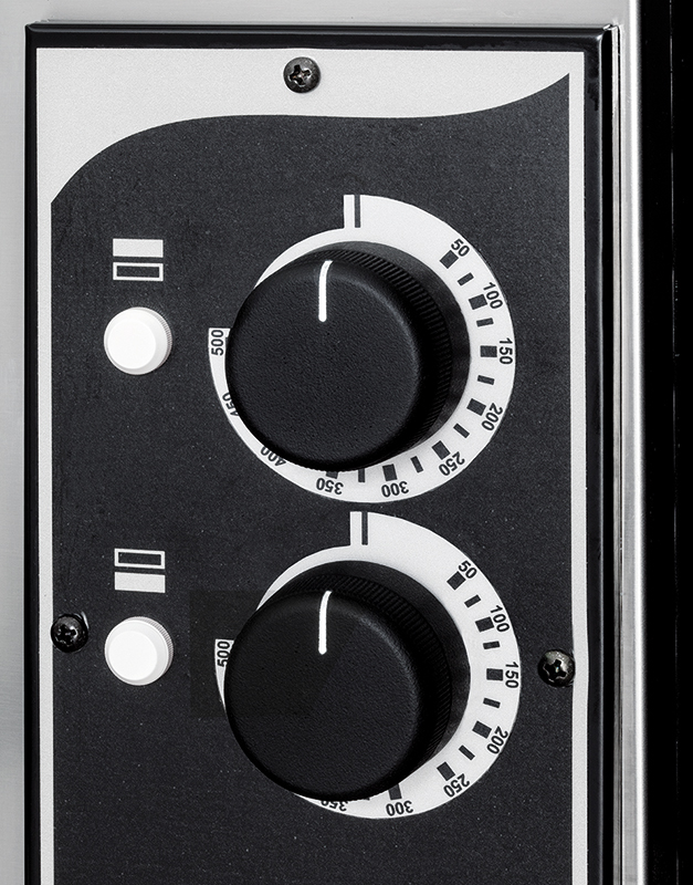 Small Basic is a series of small electric ovens in stainless steel and pre-painted sheet metal. The cooking surface is in refractory stone and the insulation is in rockwool evaporated with sheathed heating elements. The internal lighting enables a constant monitoring of the baking process. 230/400 V power supply with neutral (special voltages available on request).