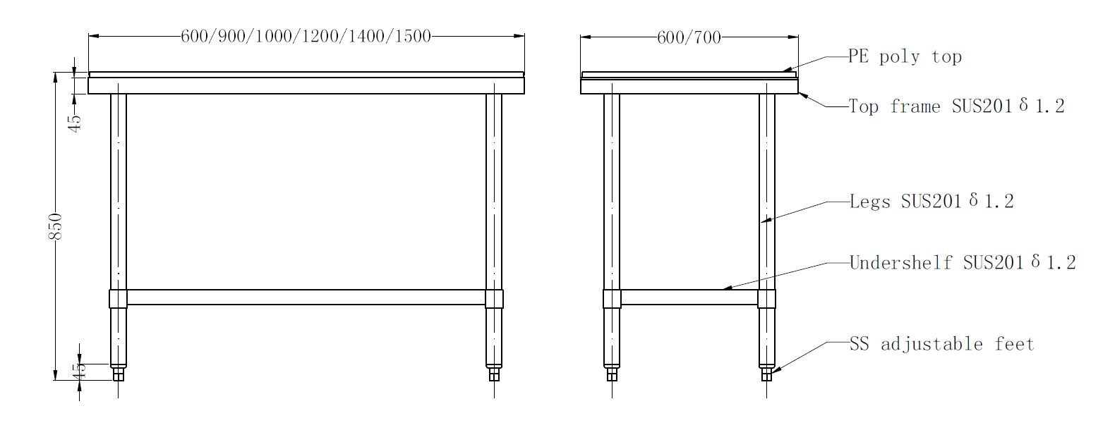 700 Snij Werktafel Bodemschap Demontabel 1000 | 7490.0290