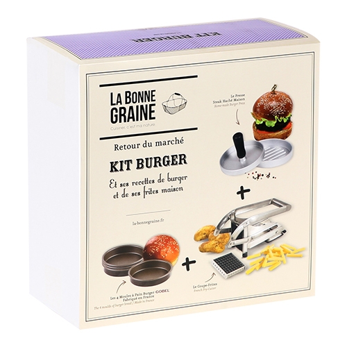 Ideaal voor het hele gezin en beginners, deze complete set maakt de bereiding van heerlijkste hamburgers mogelijk. Samenstelling van het hamburger - 1x fritessnijder - 1x hamburgerpers - 4x broodvormen - Recept ideeën