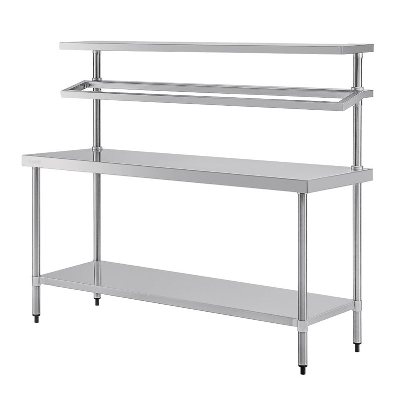 Werktafel met meerdere planken biedt maximale opslagruimte. Maak zelfs in de kleinste keuken optimaal gebruik van de ruimte. Geschikt voor GN 1/3, 1/6 en 1/9 bakken (GN bakken niet inbegrepen).