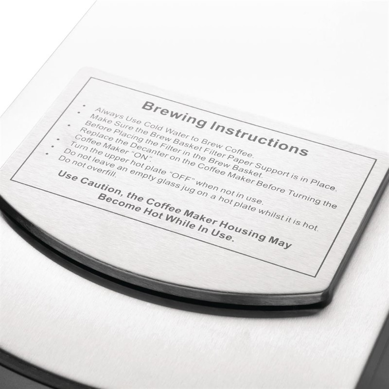 Zet binnen enkele minuten een pot heerlijk verse filterkoffie. Het stijlvol vormgegeven ontwerp is geschikt voor front-of-house gebruik. Beschikbaar met RVS of glazen kan. De RVS optie biedt uitstekend temperatuurbehoud en verliest minder dan 2°C per uur. De uitvoering met glazen kan wordt geleverd met 2 hot plates om de koffie warm te houden.