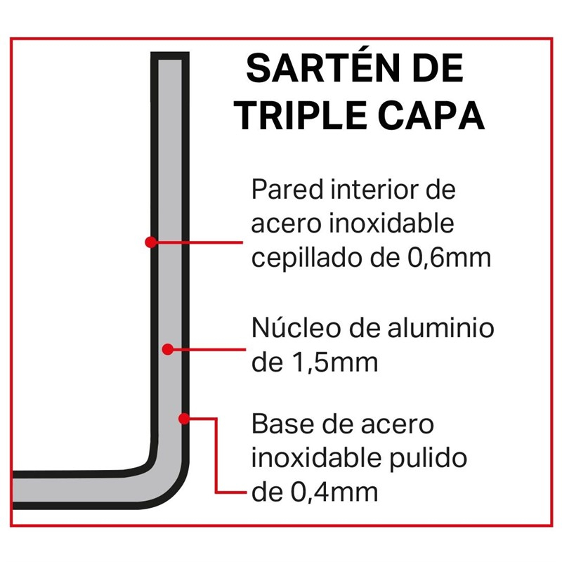 Aluminium (1.5mm), 430 stainless steel (0.6mm) and copper construction (0.4mm)
