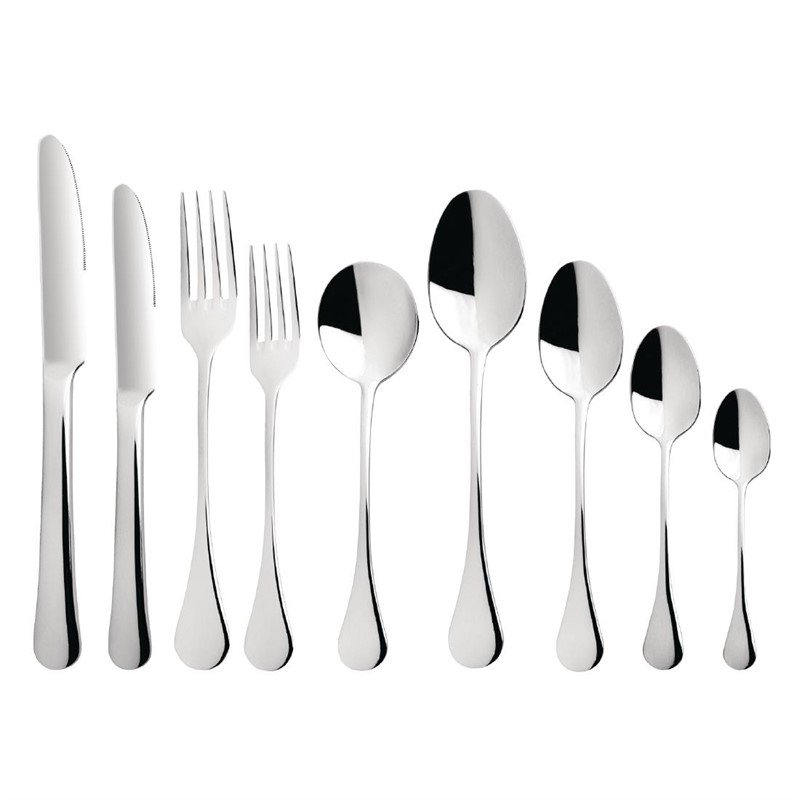 Hoge kwaliteit 18/10 RVS bestek met elegant druppelvormig heft en hoogglans afwerking. Prijs en verpakking per 12 stuks.