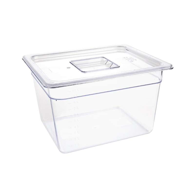 GN 1/2. Transparant. 200mm diep. Inhoud: 10,8L.