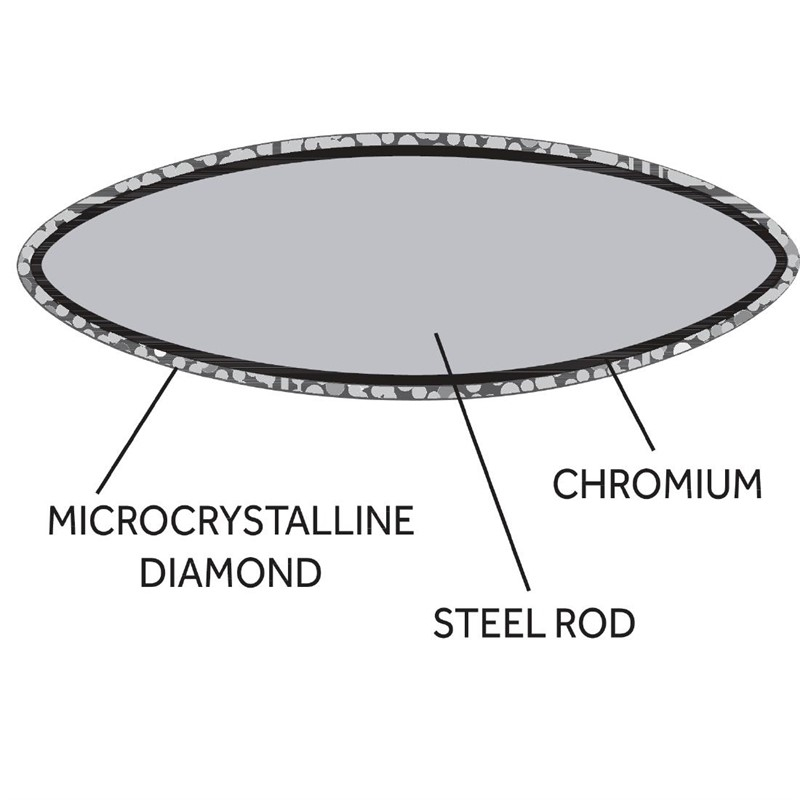 Het microkristallijn diamanten oppervlak zorgt voor betere resultaten dan traditionele slijpstaven