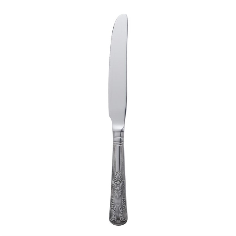 Gepolijst 18/0 RVS met klassiek bewerkt heft. Prijs en verpakking per 12 stuks