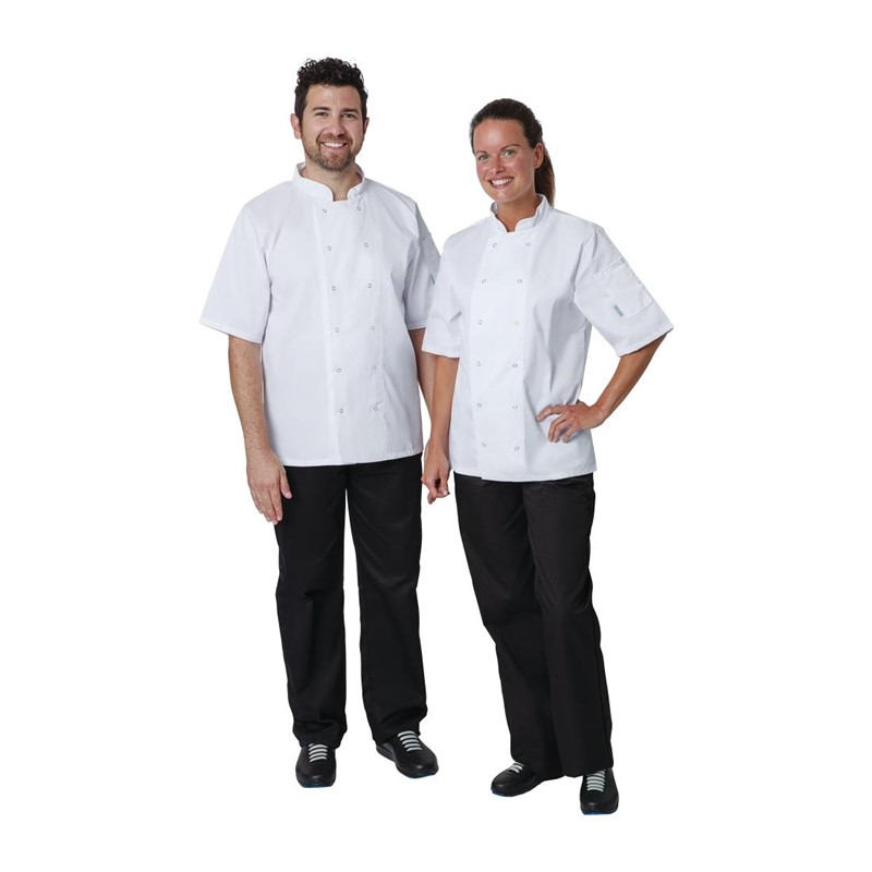 Eenvoudige, duurzame en comfortabele unisex koksbuizen van uitstekende kwaliteit geschikt voor alle keukens. Dubbele sluiting met sterke dubbelgestikte naden.