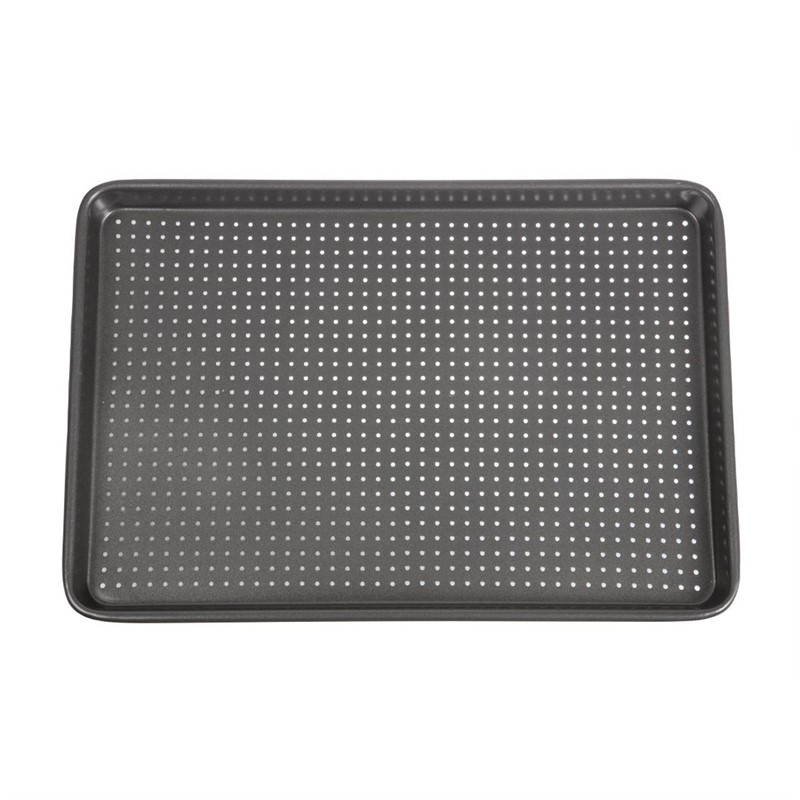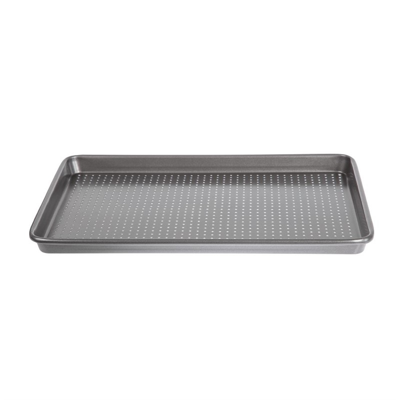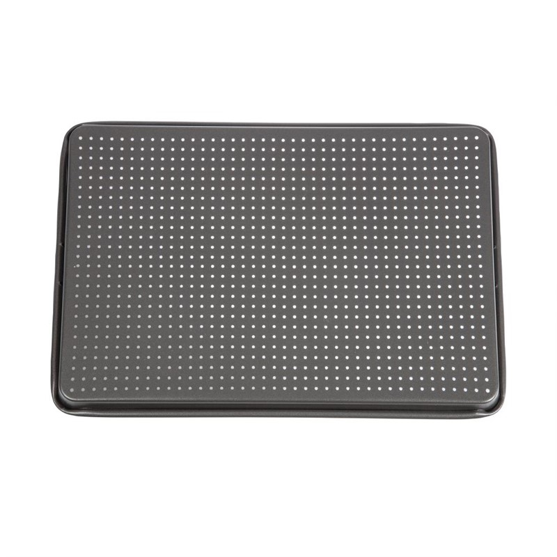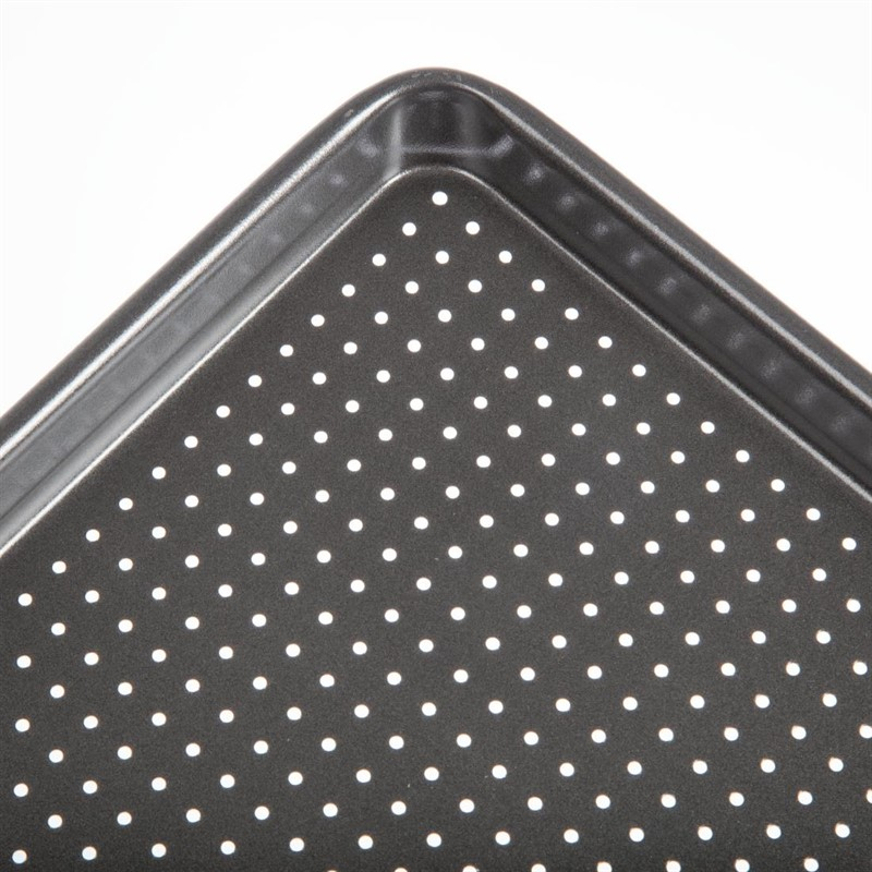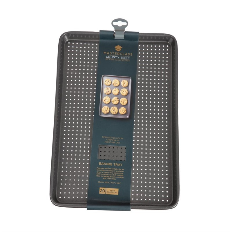 Of je nu heerlijke brownies, Swiss rolls, flapjacks of koekjes bakt, de hoogwaardige MasterClass bakplaat is een fantastische keuze. Zeer duurzaam en niet-klevend, de bakplaat maakt het gemakkelijk om geweldige kookresultaten te krijgen. Dankzij het slimme ontwerp is het dienblad veilig voor gebruik in de oven, koelkast of vriezer en is het ook vaatwasmachinebestendig. De geperforeerde bodem van de bakplaat zorgt voor een goede luchtstroom, wat zorgt voor een consistente bereiding door de hele bakplaat. De koolstofstalen constructie is ongelooflijk duurzaam en helpt bij het schoonmaken.