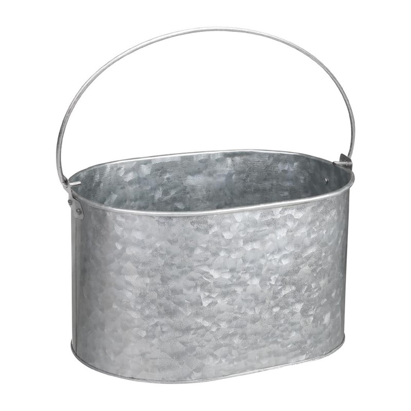 Gegalvaniseerde tafelcaddy voor bestek, servetten en sauzen. Met uitneembare verdeler en metalen handvat.