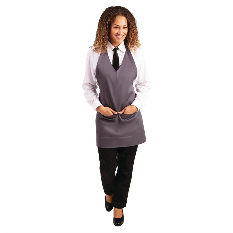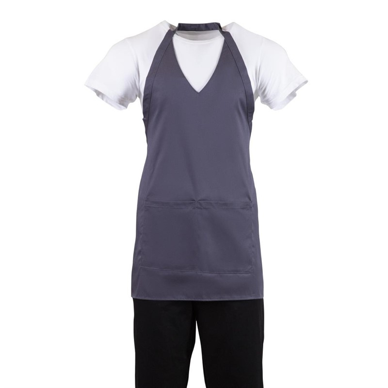 Whites halterschort met V-hals grijs