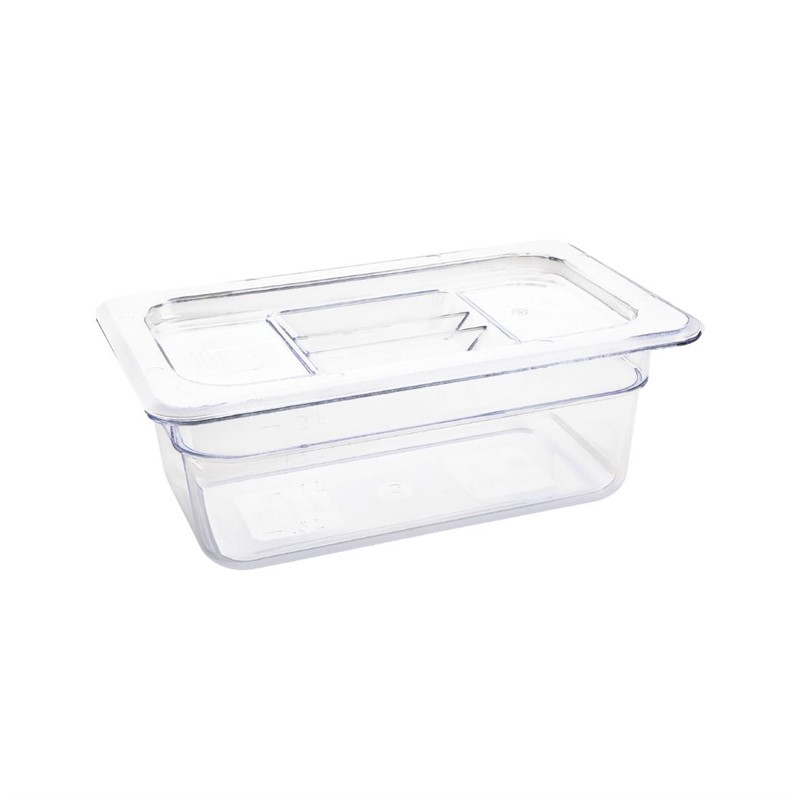 GN 1/4. Transparant. 100mm diep. Inhoud: 2,4L.