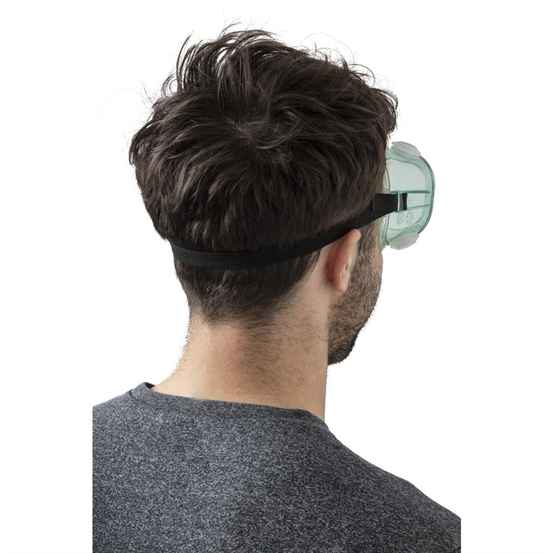 Deze veiligheidsbril heeft een zacht PVC frame met schokbestendige polycarbonaat glazen. De lichtgewicht bril biedt een breed blikveld en beschermt de ogen tegen opspattende chemicaliën tijdens het schoonmaken. De bril zit stevig en comfortabel op het hoofd met de brede, elastische band.