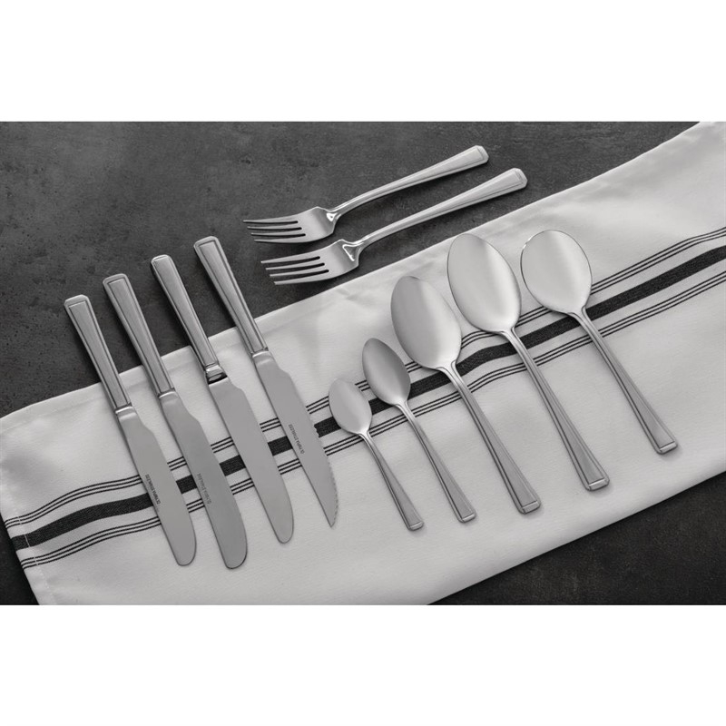 Gepolijst 18/0 RVS met belijning voor moderne uitstraling. Prijs en verpakking per 12 stuks.