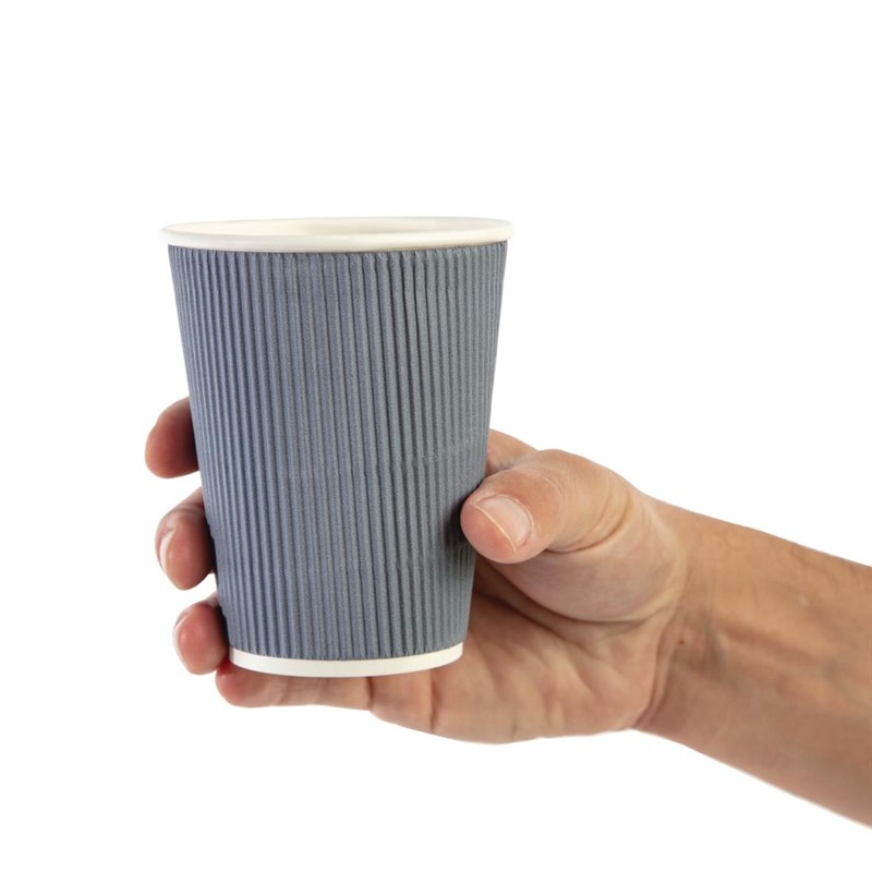 Fiesta Recyclable Koffiebekers Ribbelwand Blauwgrijs 340ml (500 Stuks) | GP434