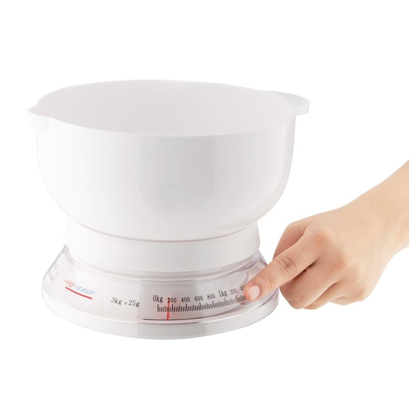 Weegschaal geschikt voor iedere kom of schaal. Compleet geleverd met 18cm kom. Capaciteit van 3 kg.