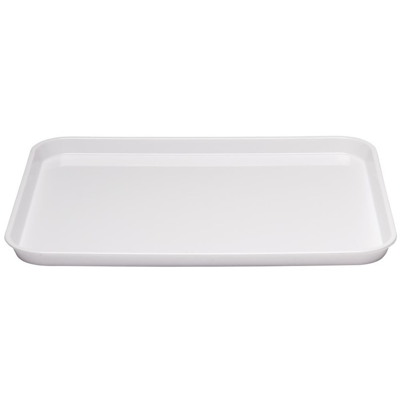 Dienbladen in mat wit Polystyreen of slagvast ABS. Beide materialen zijn voedselbestendig.