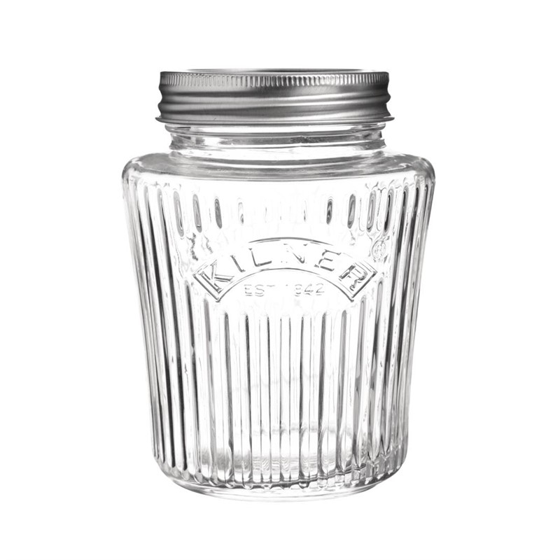 Vintage weckpotten van geribbeld glas. Voorzien van schroefdeksel die luchtdicht afsluit. Ideaal voor jam en chutneys.