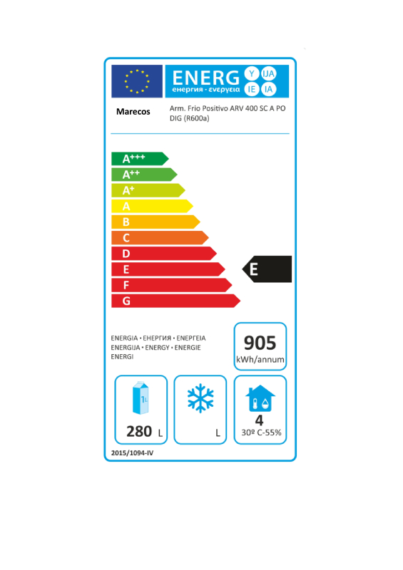 - Energie-efficiëntieklasse: E (spectrum A+++ tot E)