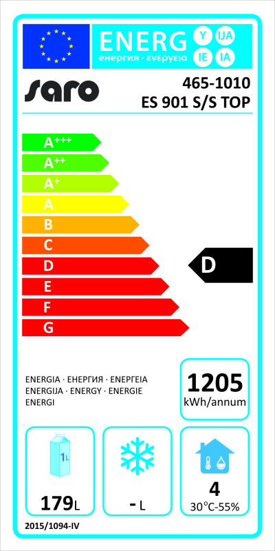 - Energie-efficiëntieklasse: D (spectrum A+++ tot E)