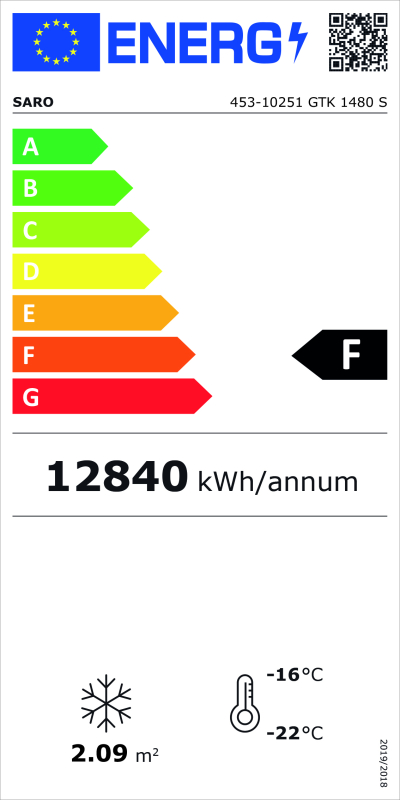 - Energie-efficiëntieklasse: F (spectrum A tot G)