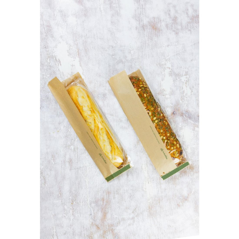 Vegware Kraft Baguette Bag Met Pla Zijvenster 4"x6"x14" (pak Van 1000) | CJ180