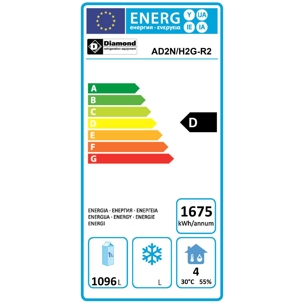 Koelkast 1400 Liter Geventileerd, 2 Glazen Deuren GN 2/1 | AD2N/H2G-R2