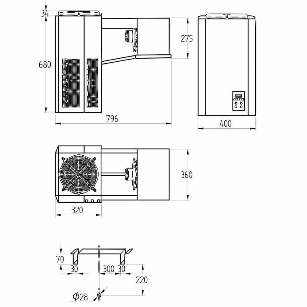 - Koelunit breedte 400 mm, weinig ruimtebeslag.