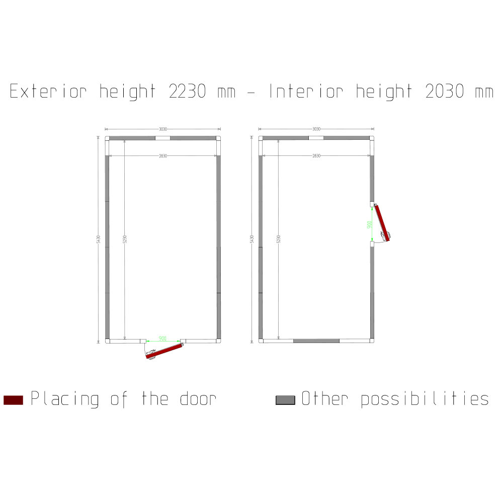 - Inwendige afmetingen 2830 x 5230 xh 2230 mm.