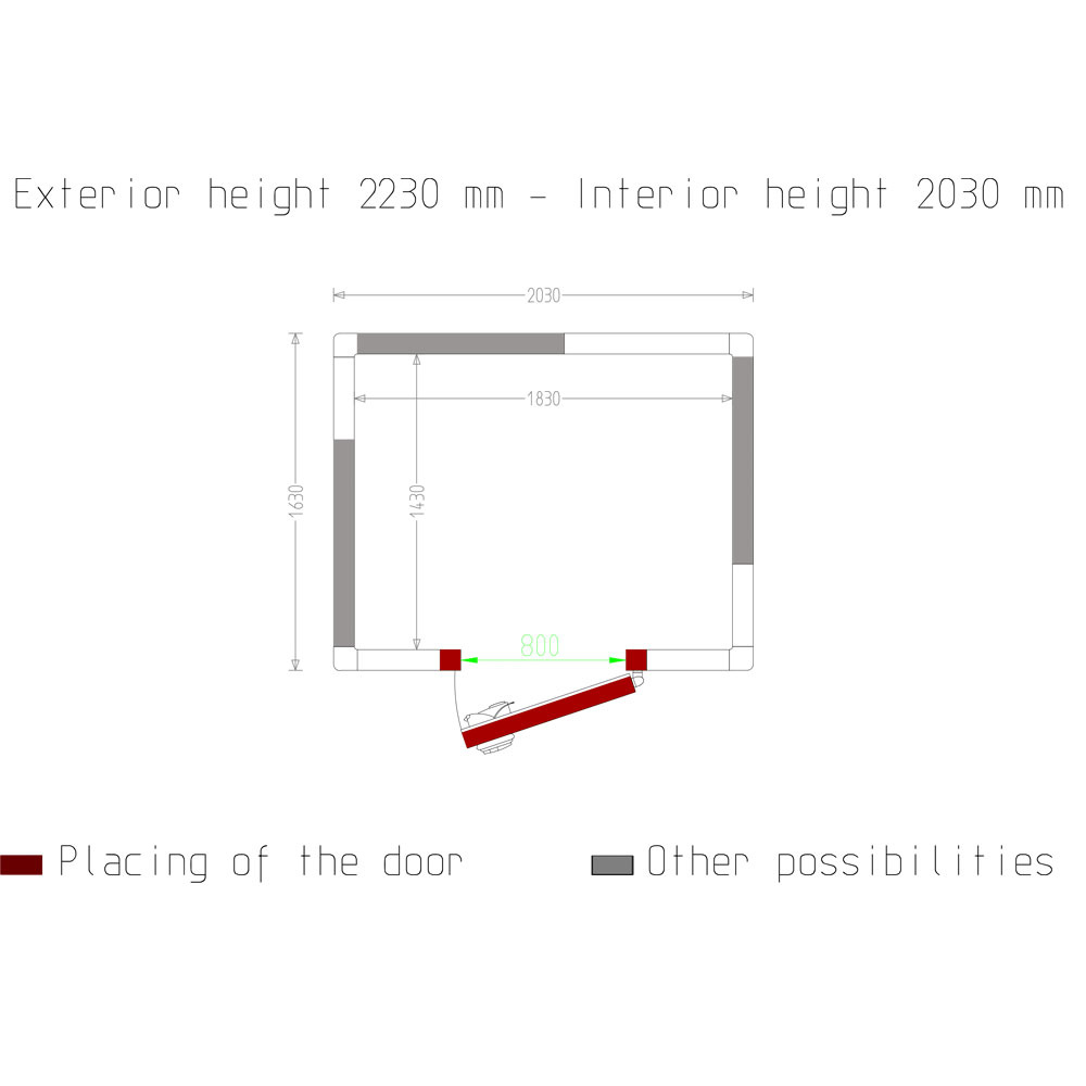 - Inwendige afmetingen 1830 x 1430 xh 2030 mm.