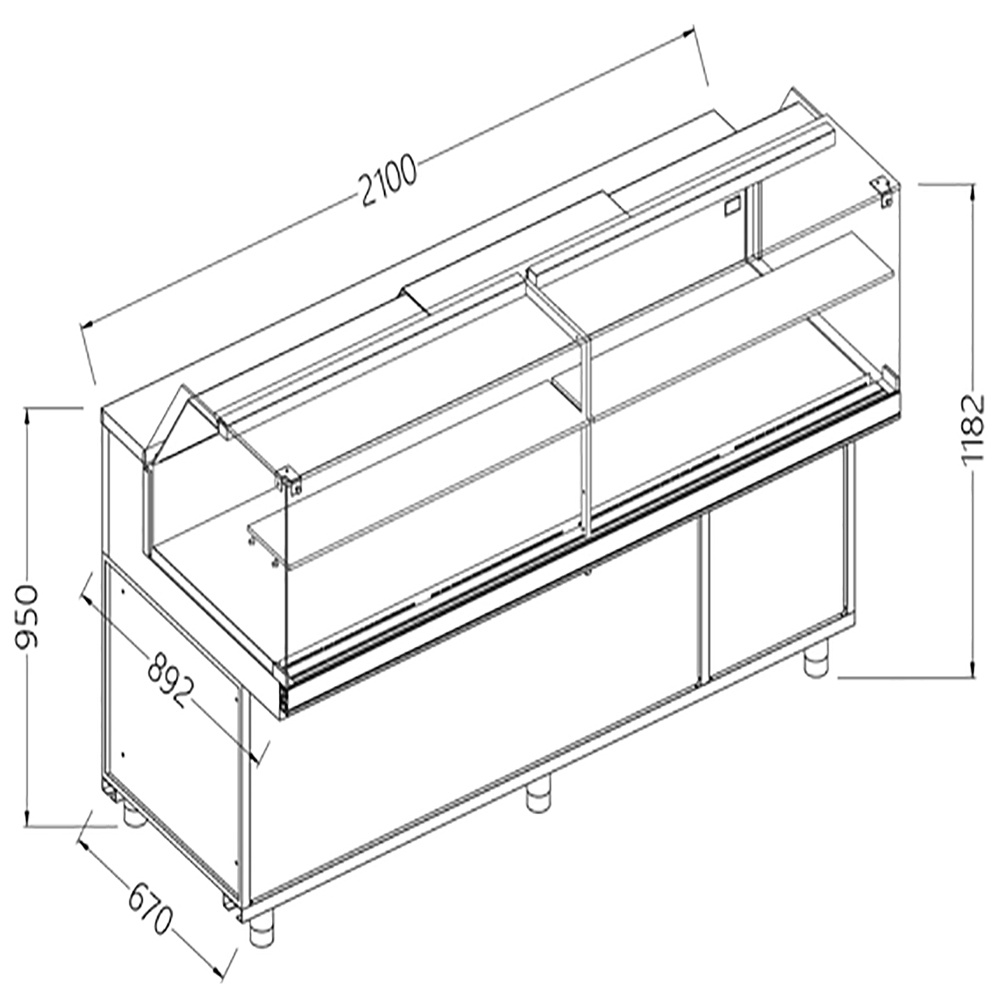 Vitrinetoonbank Snack Warm-droog _lage Ruiten, Met Groep, Met Reserve | CB21X/R