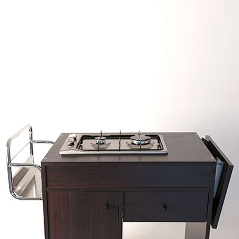 Flambeerwagen, 2 Afzonderlijke Gasvuren, Hout "wengé" | CNF-2FW