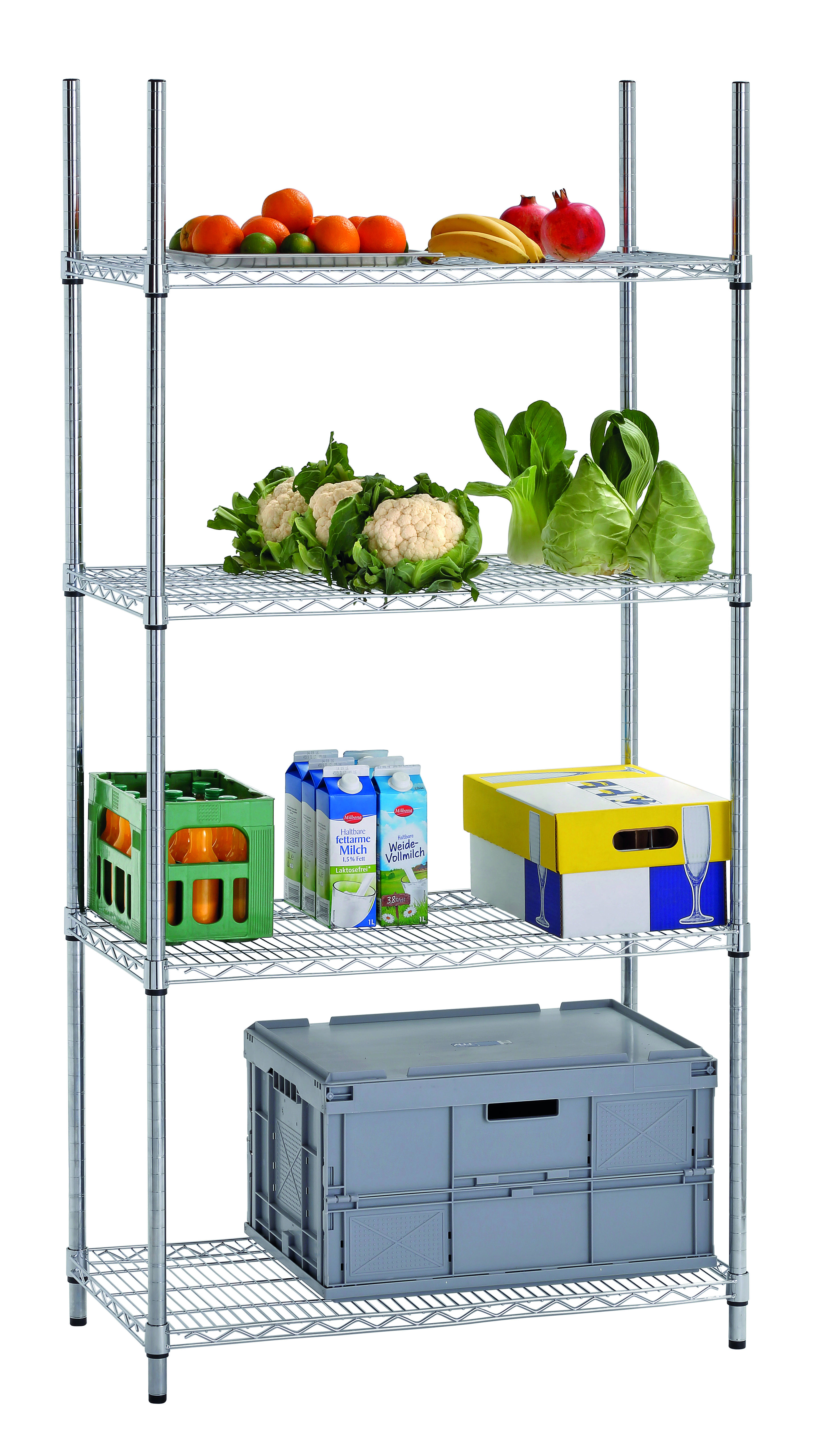 Bouwset bestaande uit: 4 hoekstijlen (insteeksysteem) ,4 schappen