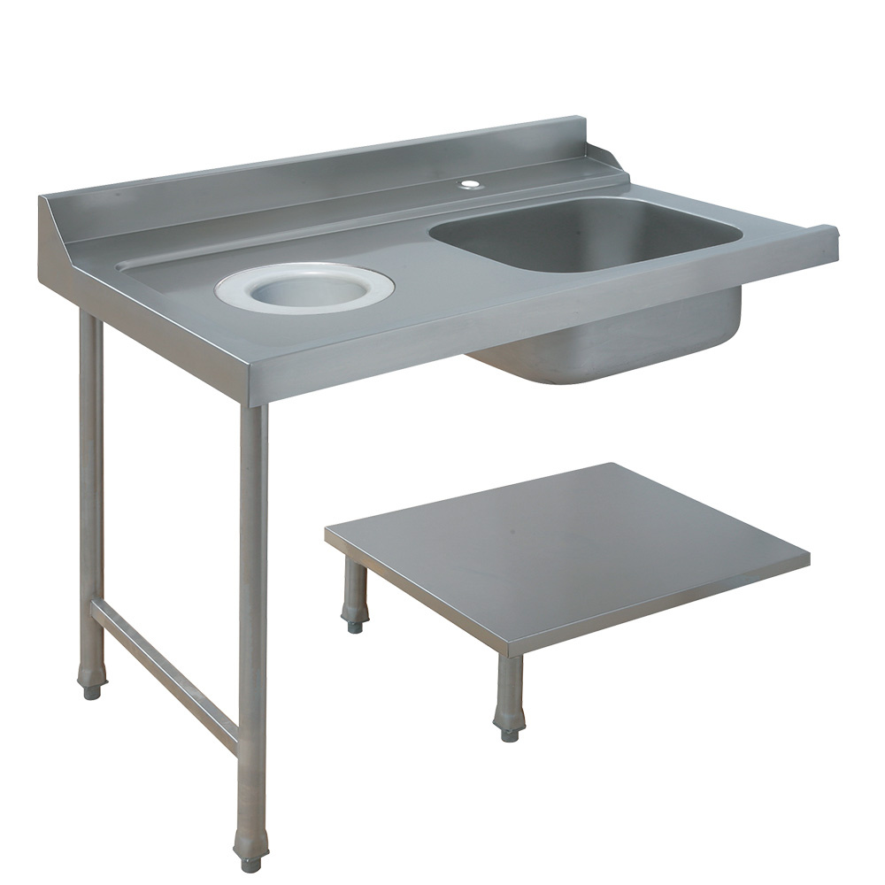 Spoeltafel met 2 kuipen 500x500x325 links druipvak op kast met 2 schuifdeuren en nis voor vaatwasser