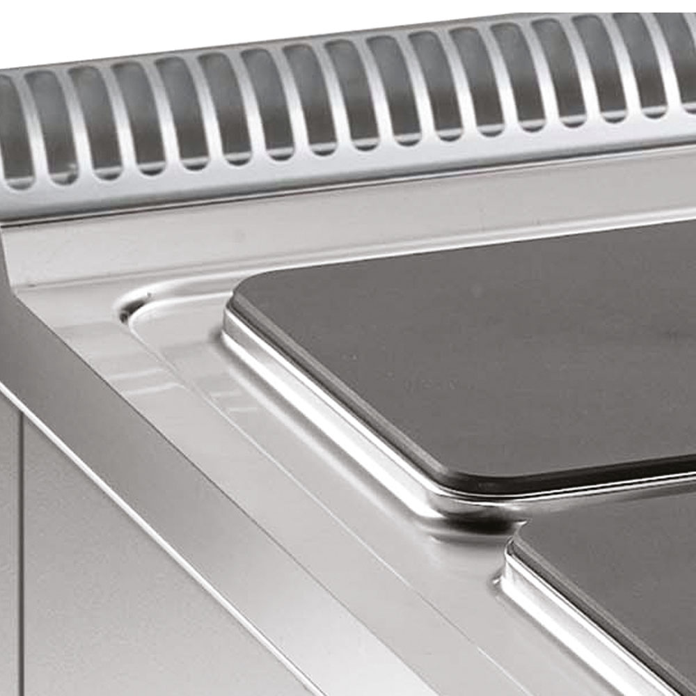 - Vierkante kookplaten in gietijzer, 300x300 mm, met dichtingsrand in roestvrij staal, veiligheidsapparaat in geval van oververhitting. Regeling van het verwarmingsvermogen door middel van een schakelaar met 7 standen, toegankelijkheid aan de voorzijde voor een zeer eenvoudig onderhoud.