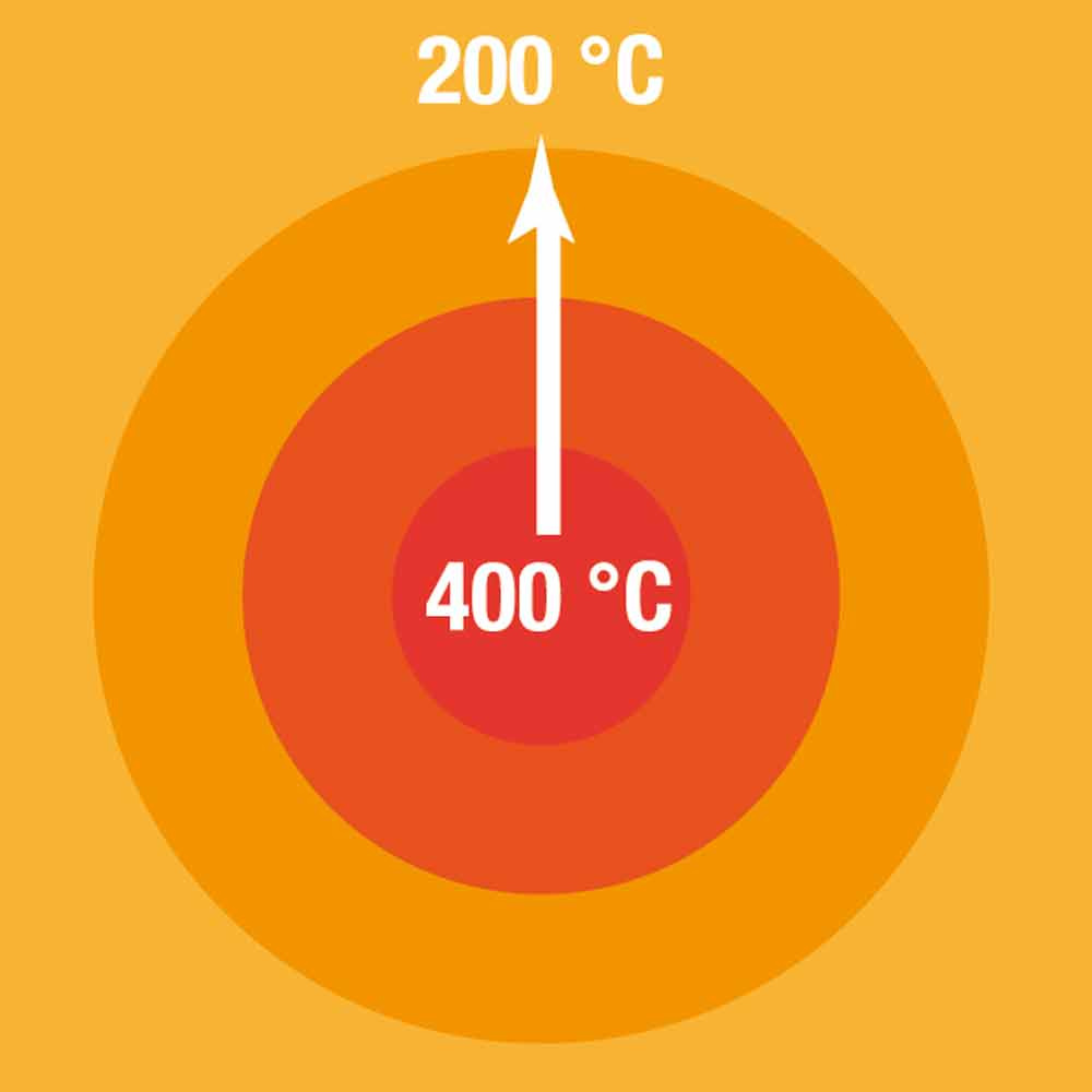 - Gietijzeren doorkookplaat (30 mm) met afneembare centrale ring, gasverwarming door een centrale brander. Geïsoleerde verbrandingskamer. Regeling door middel van een gasklep.